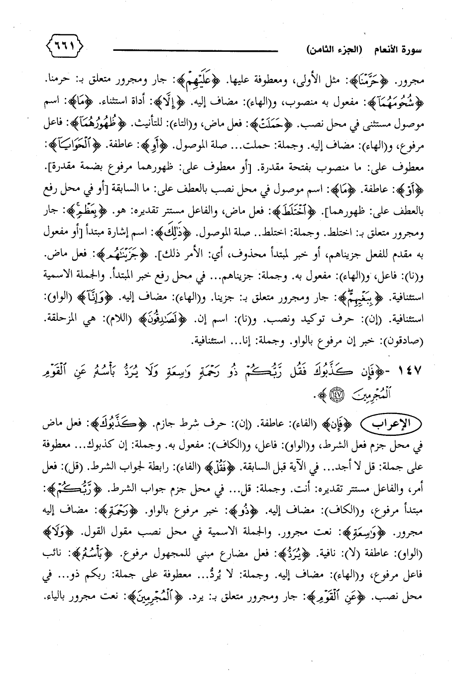 ١٤٧ - {فَإِنْ كَذَّبُوكَ فَقُلْ رَبُّكُمْ ذُو رَحْمَةٍ واسِعَةٍ وَلا يُرَدُّ بَأْسُهُ عَنِ الْقَوْمِ الْمُجْرِمِينَ (١٤٧)}