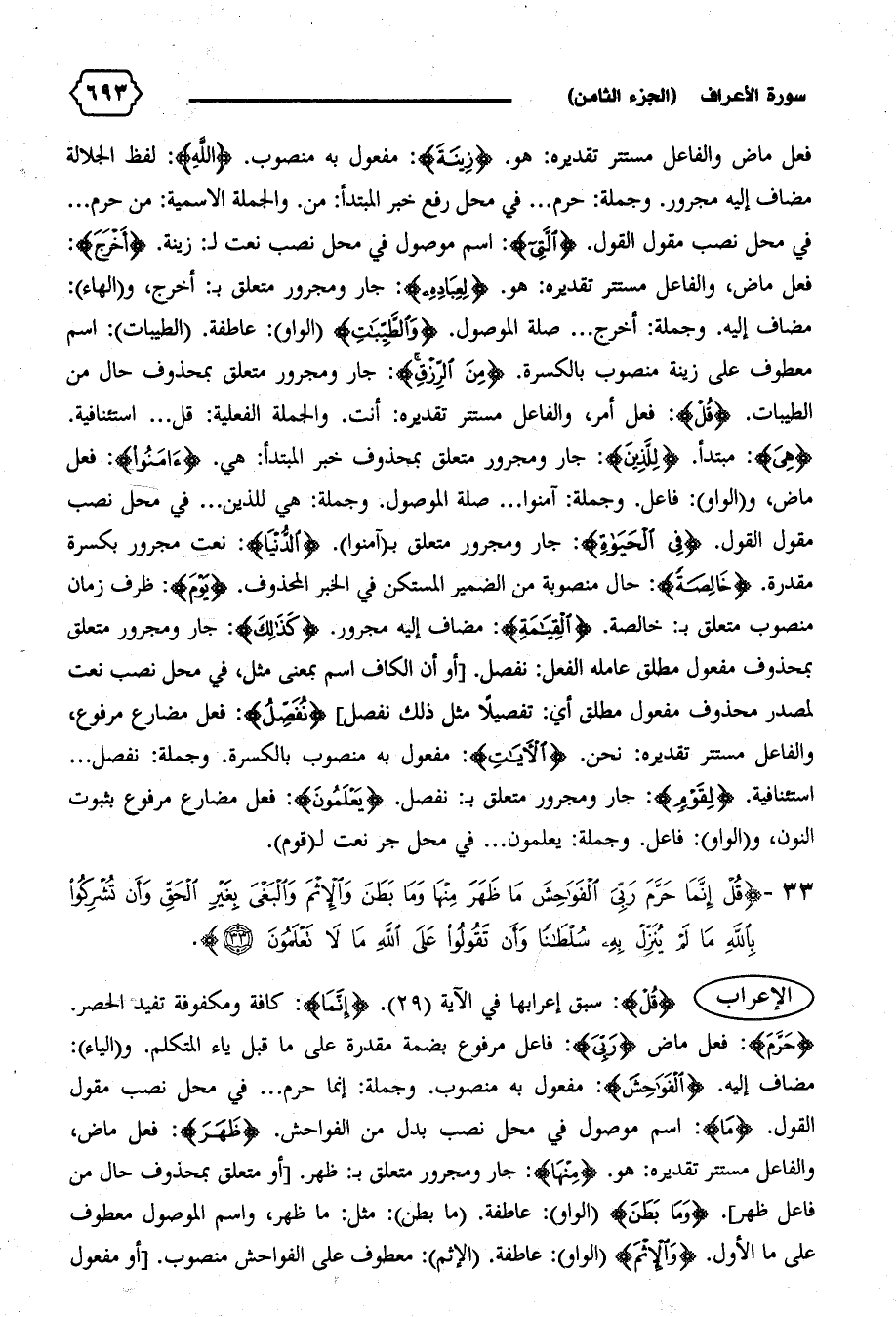 {قُلْ إِنَّما حَرَّمَ رَبِّيَ الْفَواحِشَ ما ظَهَرَ مِنْها وَما بَطَنَ وَالْإِثْمَ وَالْبَغْيَ بِغَيْرِ الْحَقِّ وَأَنْ تُشْرِكُوا بِاللهِ ما لَمْ يُنَزِّلْ بِهِ سُلْطاناً وَأَنْ تَقُولُوا عَلَى اللهِ ما لا تَعْلَمُونَ (٣٣)}