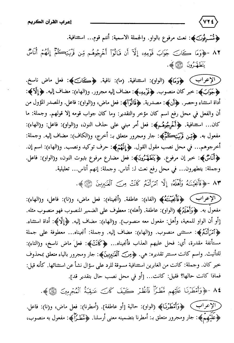 الإعراب {وَأَمْطَرْنا} (الواو): حالية [أو عاطفة]. (أمطرنا): فعل ماض، و (نا): فاعل.