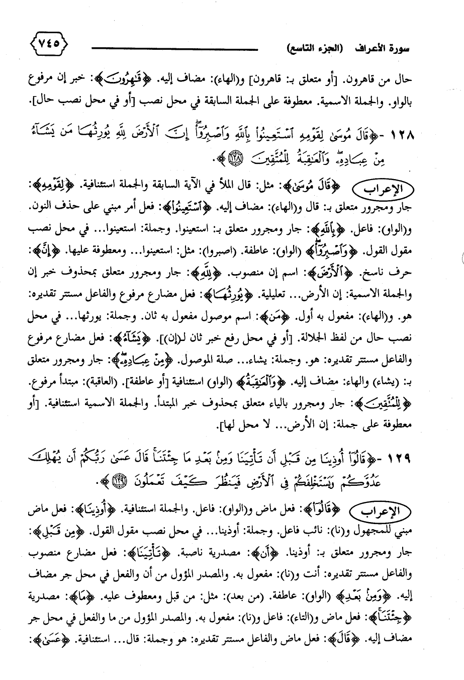 {قالَ مُوسى لِقَوْمِهِ اِسْتَعِينُوا بِاللهِ وَاِصْبِرُوا إِنَّ الْأَرْضَ لِلّهِ يُورِثُها مَنْ يَشاءُ مِنْ عِبادِهِ وَالْعاقِبَةُ لِلْمُتَّقِينَ (١٢٨)}