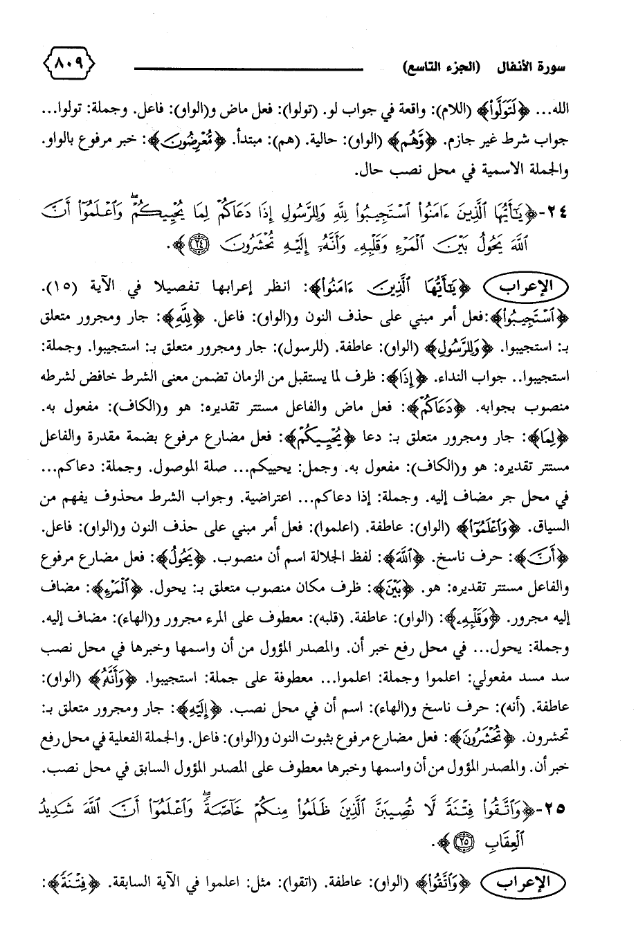{يا أَيُّهَا الَّذِينَ آمَنُوا اِسْتَجِيبُوا لِلّهِ وَلِلرَّسُولِ إِذا دَعاكُمْ لِما يُحْيِيكُمْ وَاِعْلَمُوا أَنَّ اللهَ يَحُولُ بَيْنَ الْمَرْءِ وَقَلْبِهِ وَأَنَّهُ إِلَيْهِ تُحْشَرُونَ (٢٤)}