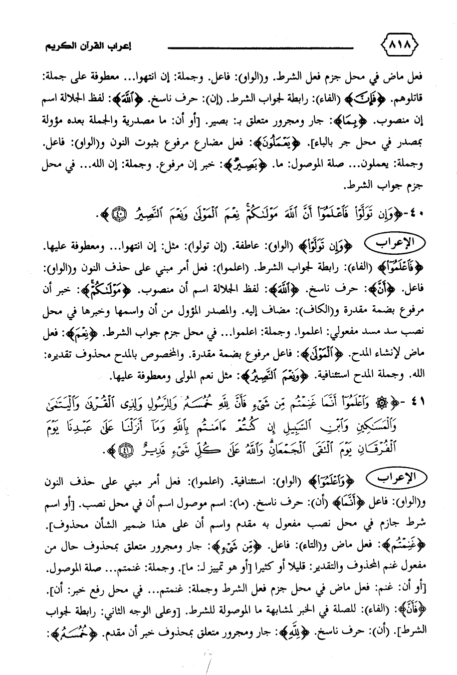 {وَاِعْلَمُوا أَنَّما غَنِمْتُمْ مِنْ شَيْءٍ فَأَنَّ لِلّهِ خُمُسَهُ وَلِلرَّسُولِ وَلِذِي الْقُرْبى وَالْيَتامى وَالْمَساكِينِ وَاِبْنِ السَّبِيلِ إِنْ كُنْتُمْ آمَنْتُمْ بِاللهِ وَما أَنْزَلْنا عَلى عَبْدِنا يَوْمَ الْفُرْقانِ يَوْمَ اِلْتَقَى الْجَمْعانِ وَاللهُ عَلى كُلِّ شَيْءٍ قَدِيرٌ (٤١)}
