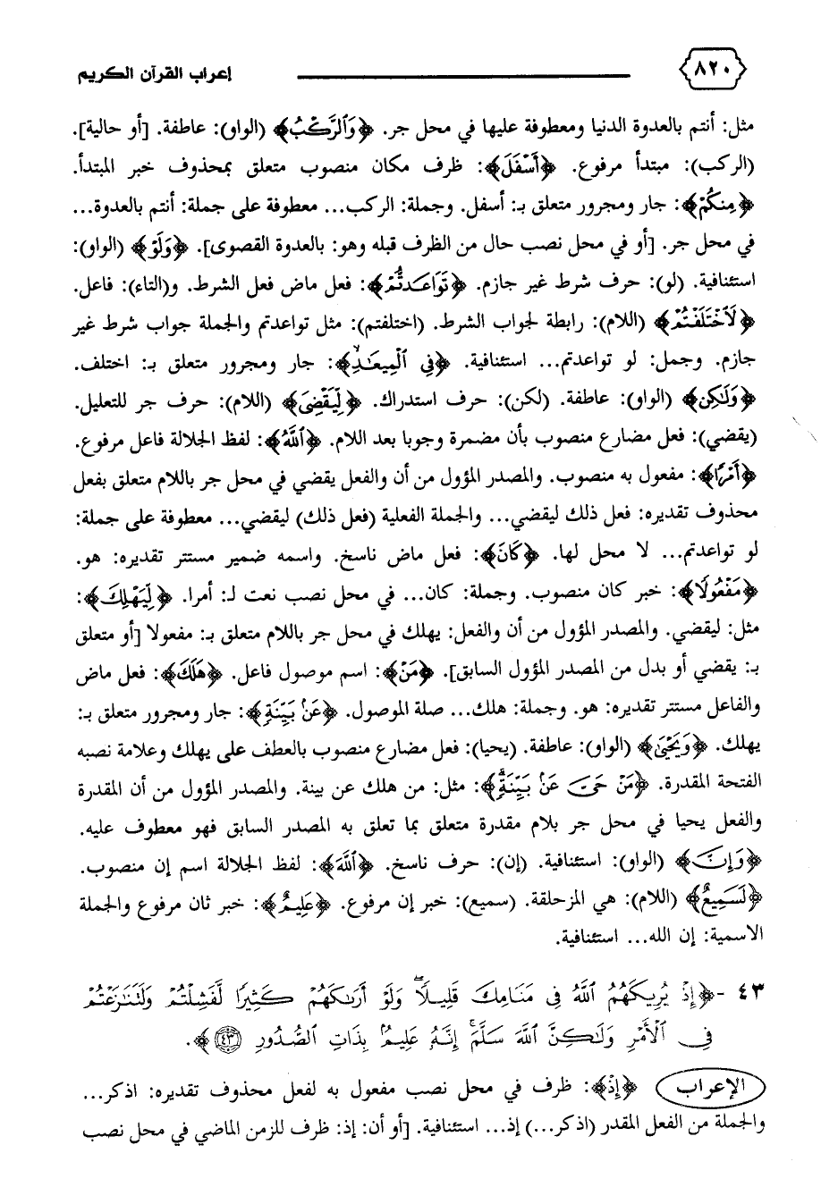{إِذْ يُرِيكَهُمُ اللهُ فِي مَنامِكَ قَلِيلاً وَلَوْ أَراكَهُمْ كَثِيراً لَفَشِلْتُمْ وَلَتَنازَعْتُمْ فِي الْأَمْرِ وَلكِنَّ اللهَ سَلَّمَ إِنَّهُ عَلِيمٌ بِذاتِ الصُّدُورِ (٤٣)}