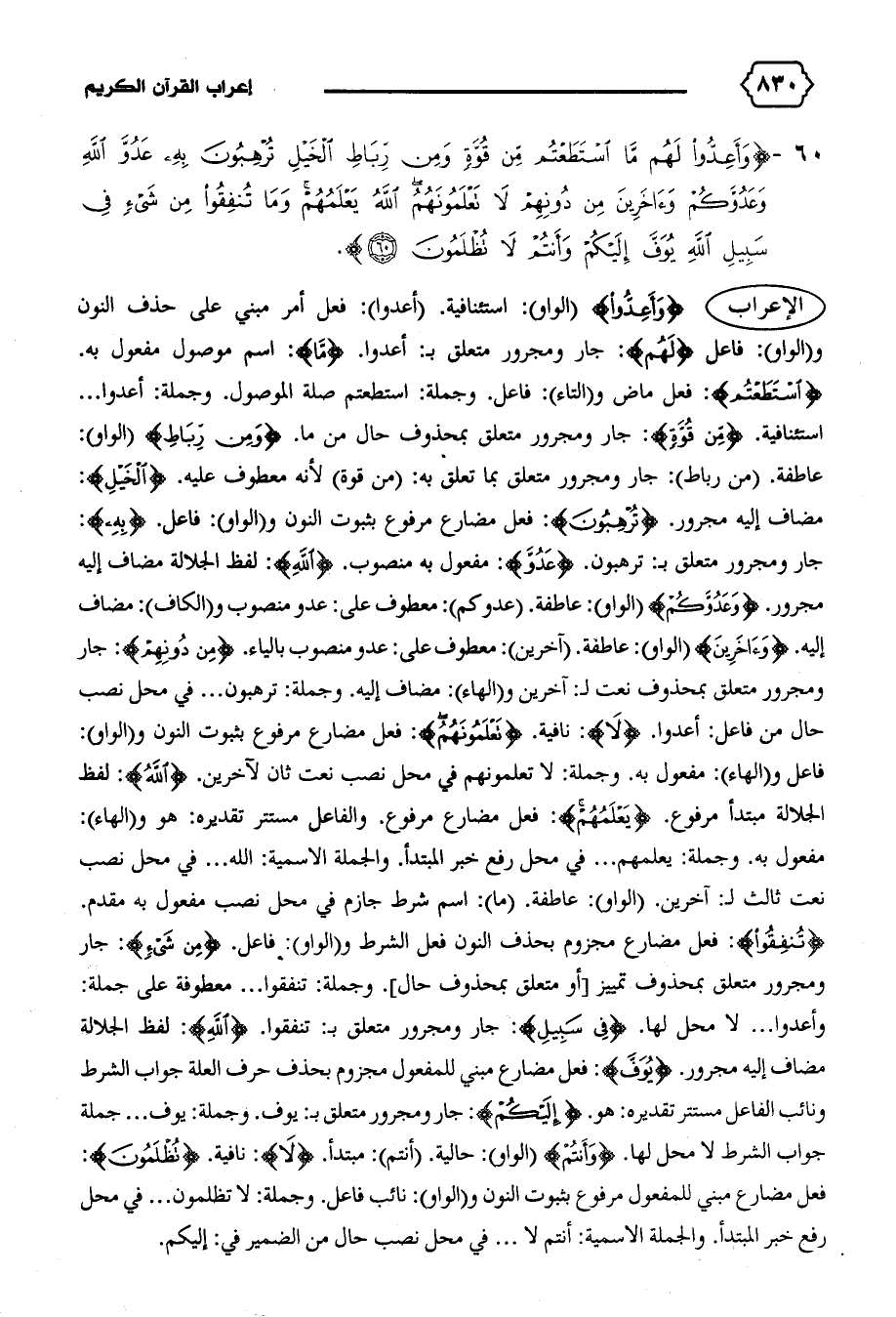 الإعراب {وَأَعِدُّوا} (الواو): استئنافية. (أعدوا): فعل أمر مبني على حذف النون و (الواو): فاعل {لَهُمْ}: جار ومجرور متعلق ب: أعدوا. {مَا}: اسم موصول مفعول به.