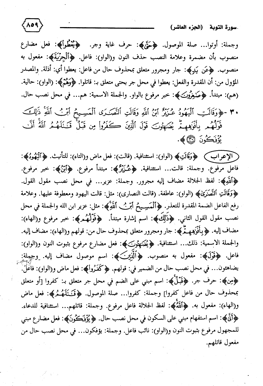 {وَقالَتِ الْيَهُودُ عُزَيْرٌ اِبْنُ اللهِ وَقالَتِ النَّصارى الْمَسِيحُ اِبْنُ اللهِ ذلِكَ قَوْلُهُمْ بِأَفْواهِهِمْ يُضاهِؤُنَ قَوْلَ الَّذِينَ كَفَرُوا مِنْ قَبْلُ قاتَلَهُمُ اللهُ أَنّى يُؤْفَكُونَ (٣٠)}