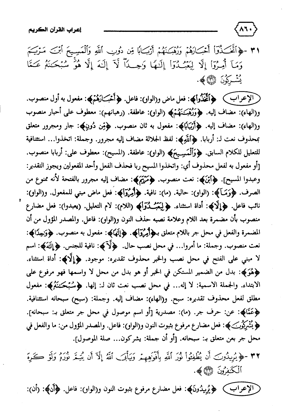 {اِتَّخَذُوا أَحْبارَهُمْ وَرُهْبانَهُمْ أَرْباباً مِنْ دُونِ اللهِ وَالْمَسِيحَ اِبْنَ مَرْيَمَ وَما أُمِرُوا إِلاّ لِيَعْبُدُوا إِلهاً واحِداً لا إِلهَ إِلاّ هُوَ سُبْحانَهُ عَمّا يُشْرِكُونَ (٣١)}