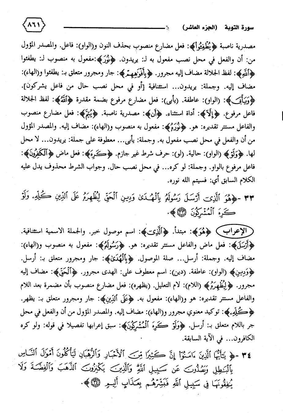 {كُلِّهِ}: توكيد معنوي مجرور و (الهاء): مضاف إليه. والمصدر المؤول من أن والفعل في محل جر باللام متعلق ب: أرسل. {وَلَوْ كَرِهَ الْمُشْرِكُونَ}: سبق إعرابها تفصيلا في قوله: ولو كره الكافرون ... في الآية السابقة.
