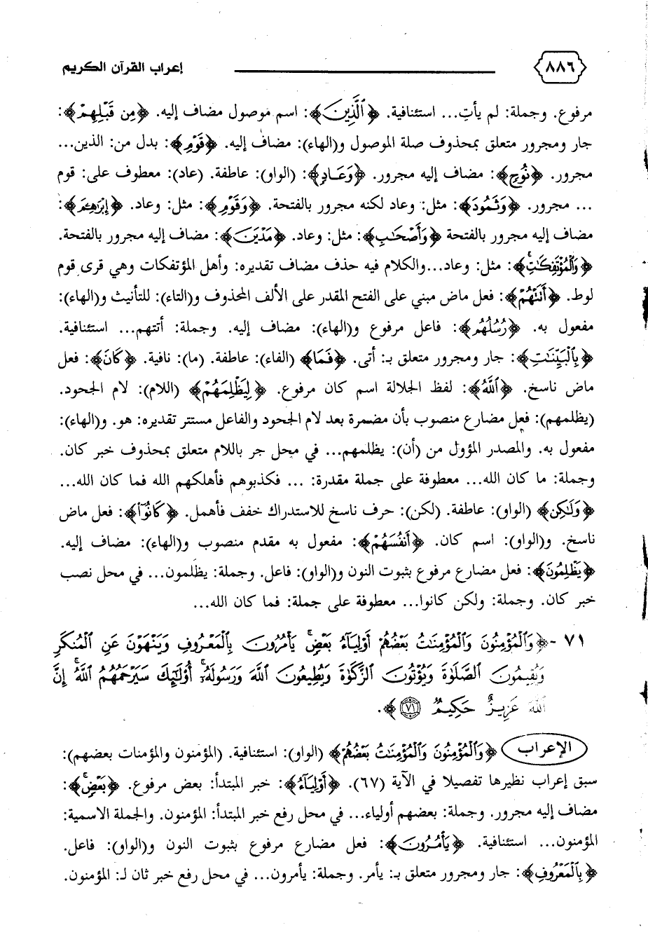 الإعراب {وَالْمُؤْمِنُونَ وَالْمُؤْمِناتُ بَعْضُهُمْ} (الواو): استئنافية. (المؤمنون والمؤمنات بعضهم):