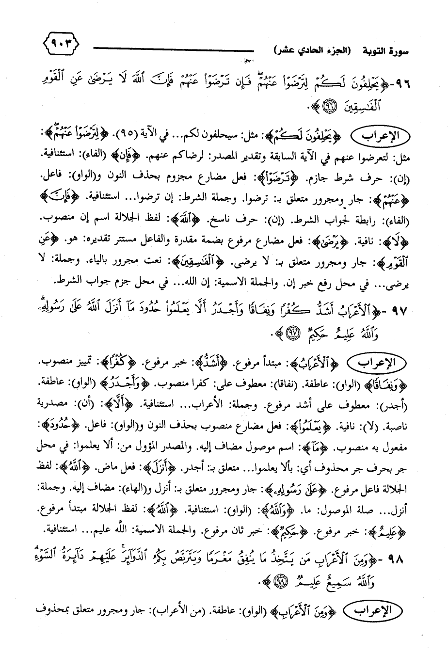 الإعراب {يَحْلِفُونَ لَكُمْ}: مثل: سيحلفون لكم ... في الآية (٩٥). {لِتَرْضَوْا عَنْهُمْ}: