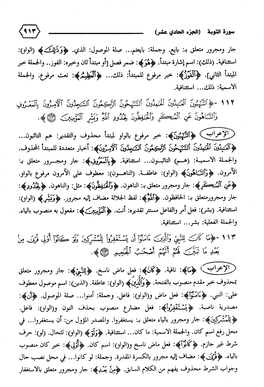 الإعراب {التّائِبُونَ}: خبر مرفوع بالواو لمبتدإ محذوف والتقدير: هم التائبون