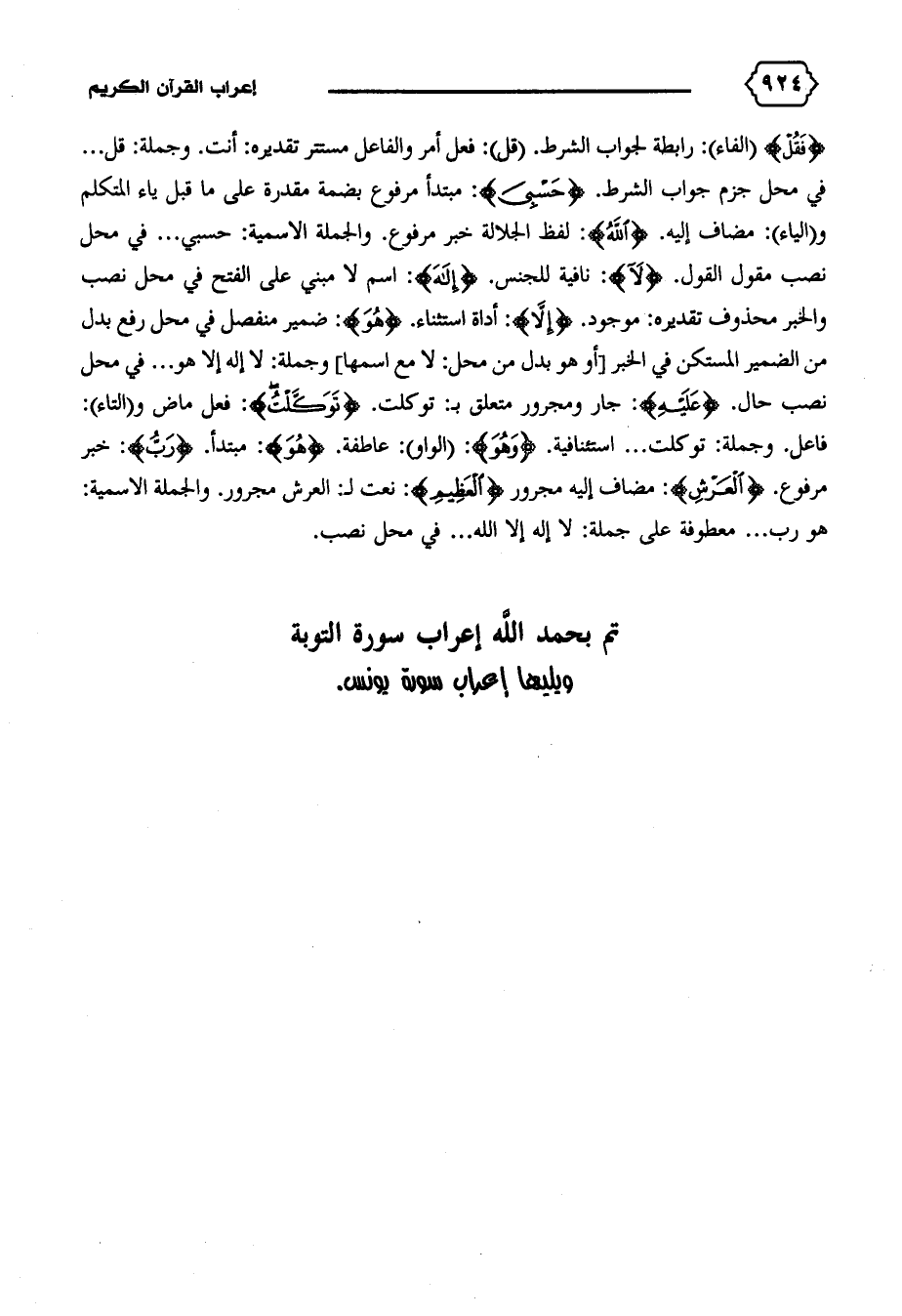 تم بحمد الله إعراب سورة التوبة ويليها إعراب سورة يونس.