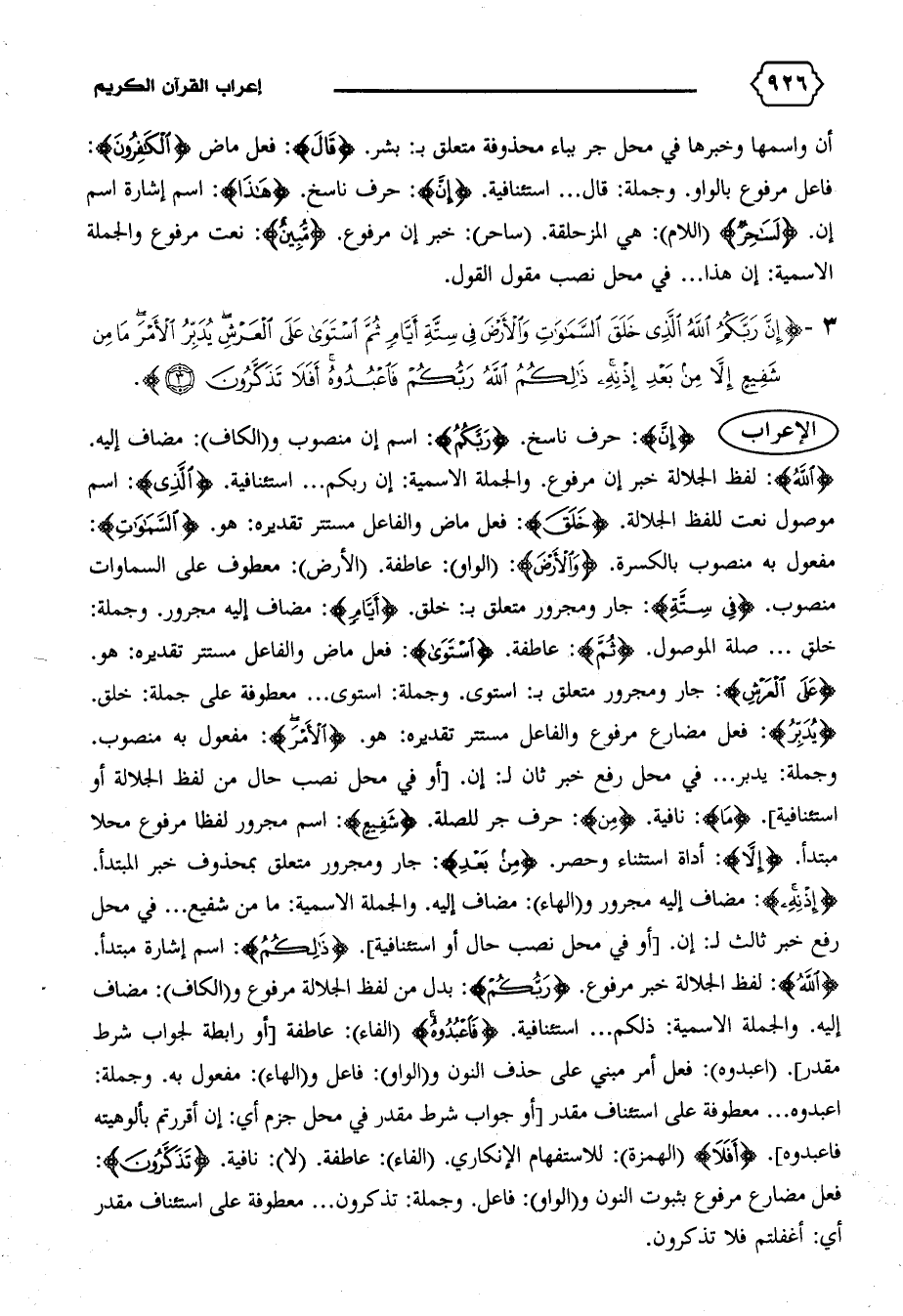 {إِنَّ رَبَّكُمُ اللهُ الَّذِي خَلَقَ السَّماواتِ وَالْأَرْضَ فِي سِتَّةِ أَيّامٍ ثُمَّ اِسْتَوى عَلَى الْعَرْشِ يُدَبِّرُ الْأَمْرَ ما مِنْ شَفِيعٍ إِلاّ مِنْ بَعْدِ إِذْنِهِ ذلِكُمُ اللهُ رَبُّكُمْ فَاعْبُدُوهُ أَفَلا تَذَكَّرُونَ (٣)}