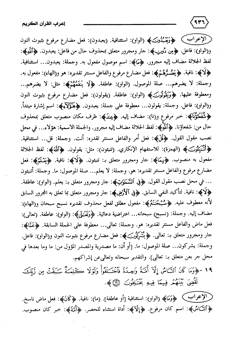 الإعراب {وَيَعْبُدُونَ} (الواو): استئنافية. (يعبدون): فعل مضارع مرفوع بثبوت النون و (الواو): فاعل. {مِنْ دُونِ}: جار ومجرور متعلق بمحذوف حال من فاعل: يعبدون. {اللهِ}: