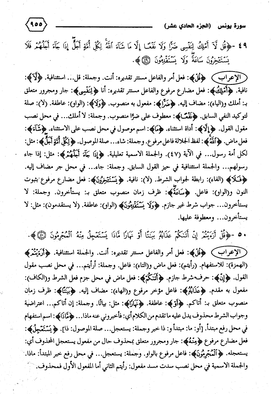 {قُلْ لا أَمْلِكُ لِنَفْسِي ضَرًّا وَلا نَفْعاً إِلاّ ما شاءَ اللهُ لِكُلِّ أُمَّةٍ أَجَلٌ إِذا جاءَ أَجَلُهُمْ فَلا يَسْتَأْخِرُونَ ساعَةً وَلا يَسْتَقْدِمُونَ (٤٩)}