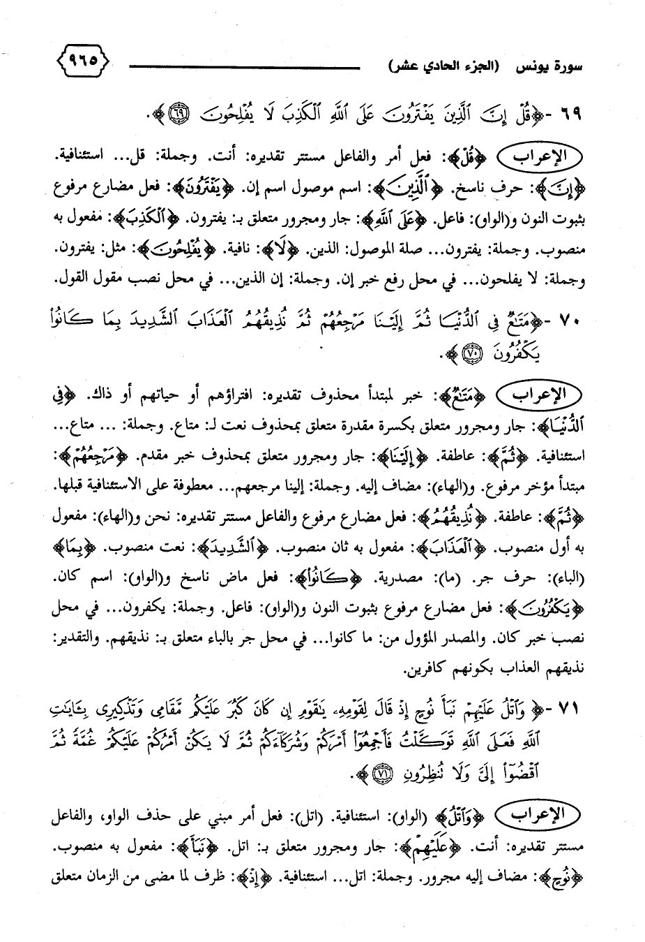 الإعراب {مَتاعٌ}: خبر لمبتدإ محذوف تقديره: افتراؤهم أو حياتهم أو ذاك. {فِي الدُّنْيا}: جار ومجرور متعلق بكسرة مقدرة متعلق بمحذوف نعت ل: متاع. وجملة: ... متاع