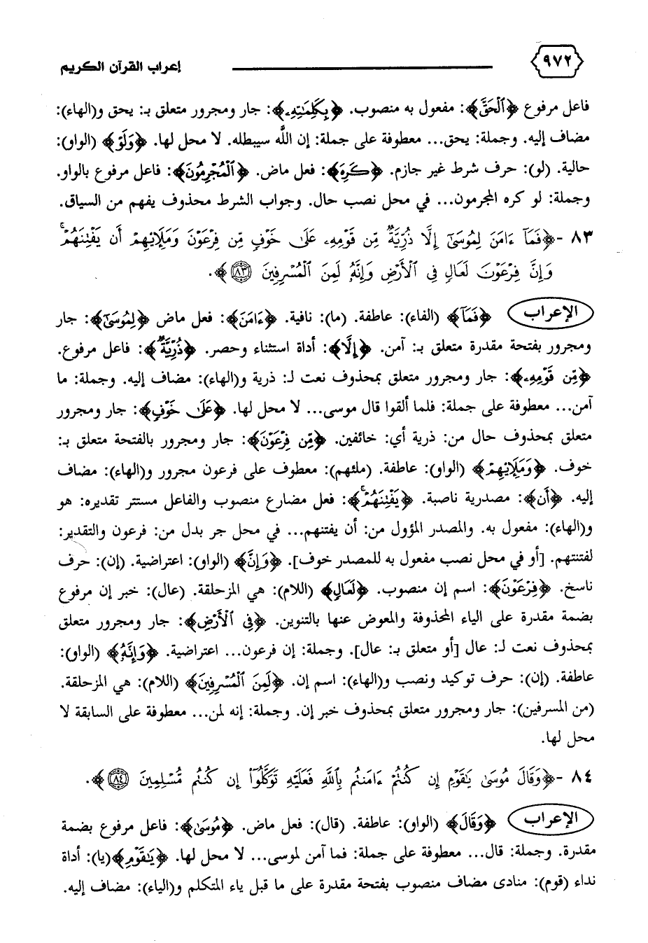 {فَما آمَنَ لِمُوسى إِلاّ ذُرِّيَّةٌ مِنْ قَوْمِهِ عَلى خَوْفٍ مِنْ فِرْعَوْنَ وَمَلائِهِمْ أَنْ يَفْتِنَهُمْ وَإِنَّ فِرْعَوْنَ لَعالٍ فِي الْأَرْضِ وَإِنَّهُ لَمِنَ الْمُسْرِفِينَ (٨٣)}