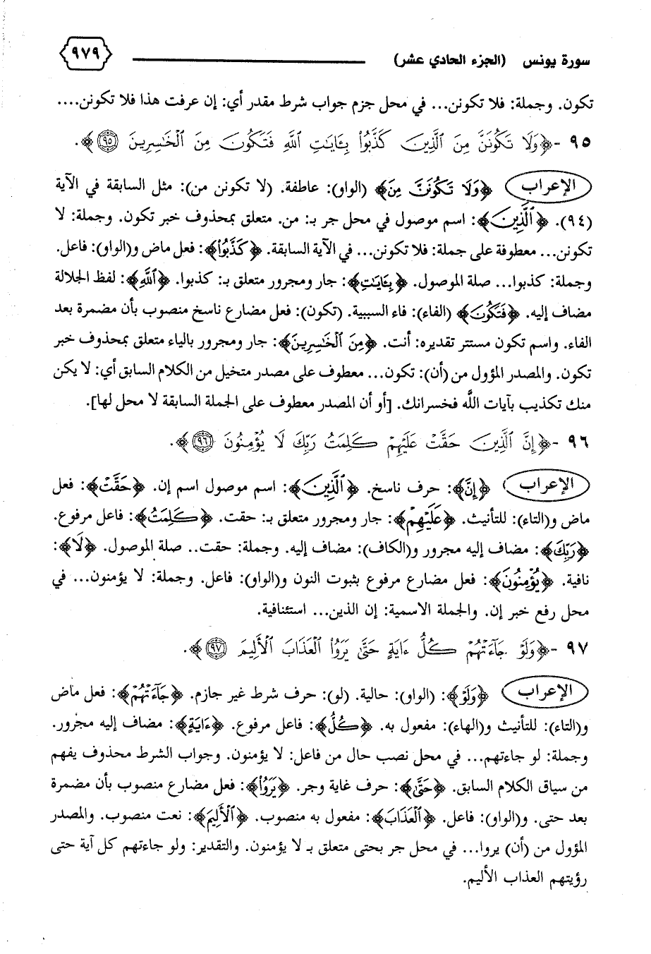 الإعراب {إِنَّ}: حرف ناسخ. {الَّذِينَ}: اسم موصول اسم إن. {حَقَّتْ}: فعل ماض و (التاء): للتأنيث. {عَلَيْهِمْ}: جار ومجرور متعلق ب: حقت. {كَلِمَتُ}: فاعل مرفوع.