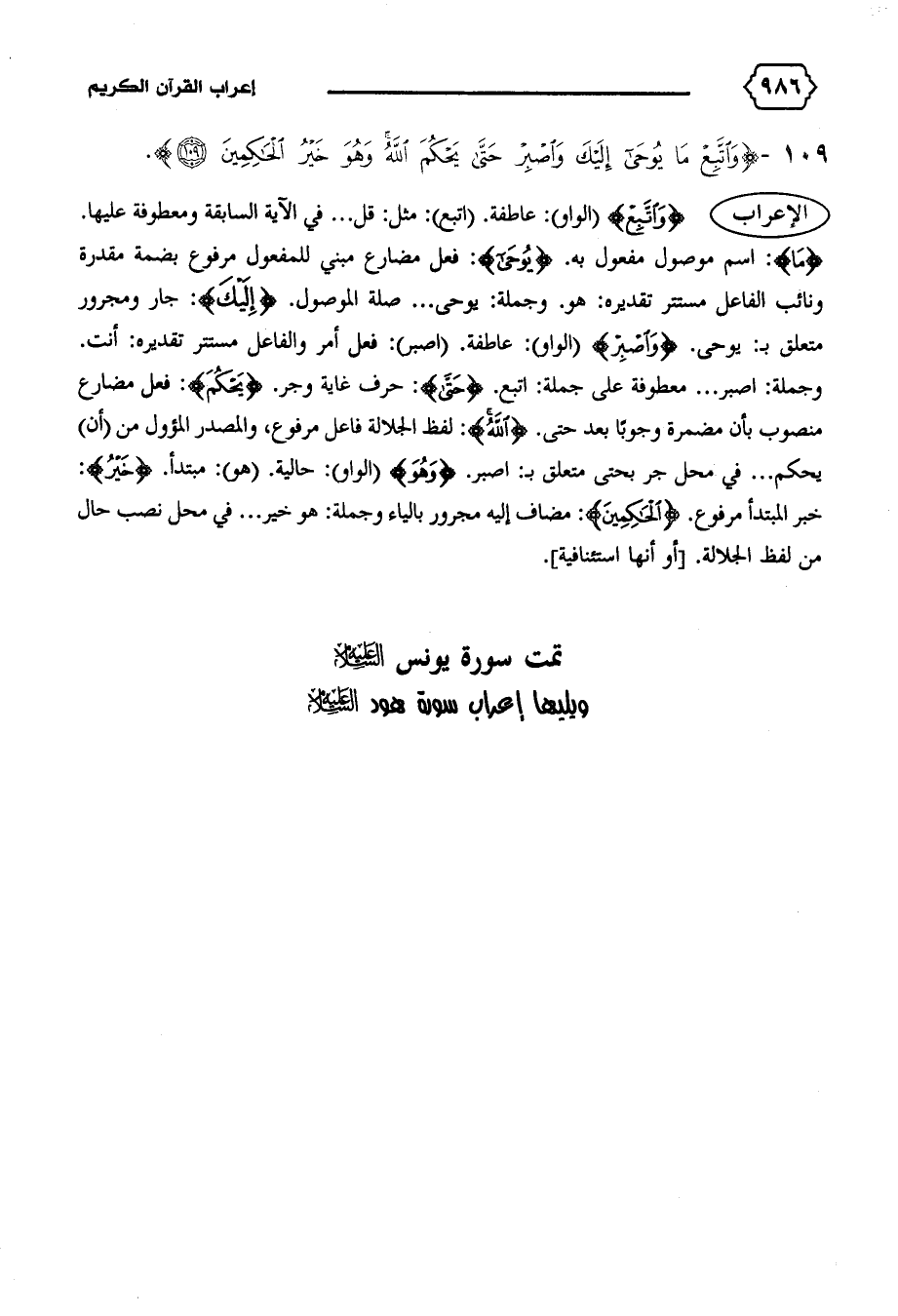 تمت سورة يونس عليه السّلام ويليها إعراب سورة هود عليه السّلام