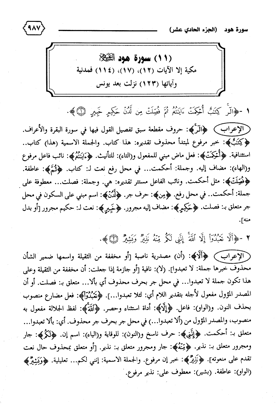 {الر كِتابٌ أُحْكِمَتْ آياتُهُ ثُمَّ فُصِّلَتْ مِنْ لَدُنْ حَكِيمٍ خَبِيرٍ (١)}