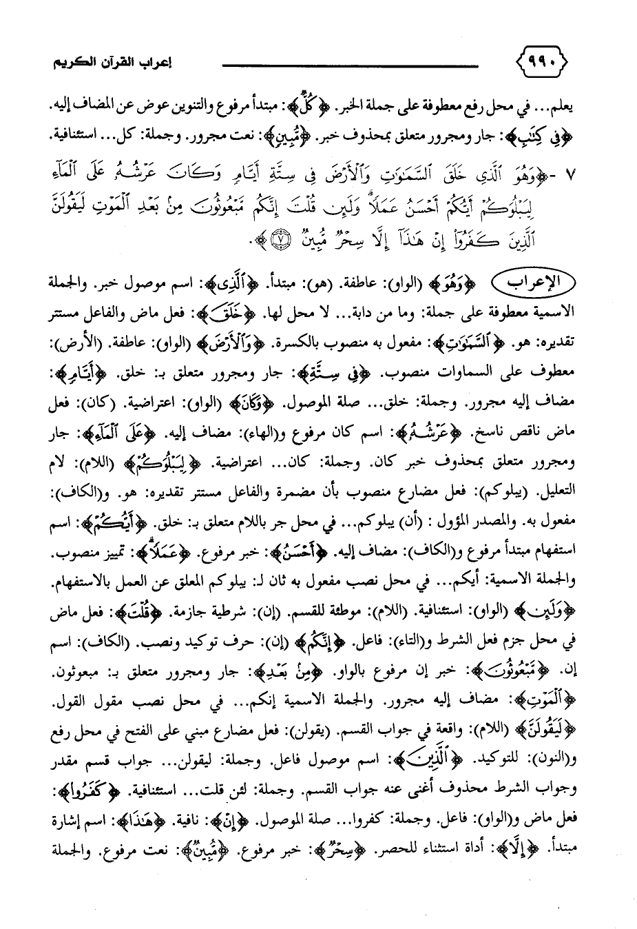 الإعراب {وَهُوَ} (الواو): عاطفة. (هو): مبتدأ. {الَّذِي}: اسم موصول خبر. والجملة الاسمية معطوفة على جملة: وما من دابة ... لا محل لها. {خَلَقَ}: فعل ماض والفاعل مستتر تقديره: هو. {السَّماواتِ}: مفعول به منصوب بالكسرة. {وَالْأَرْضَ} (الواو): عاطفة. (الأرض):