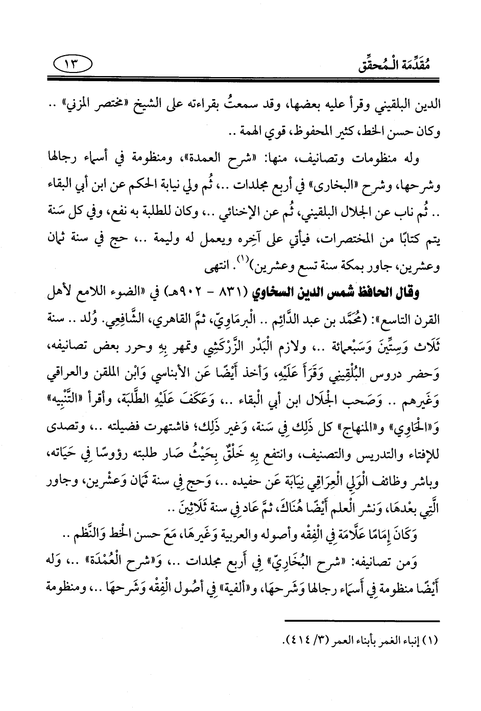 الدين البلقيني وقرأ عليه بعضها، وقد سمعتُ بقراءته على الشيخ "مختصر المزني" ..