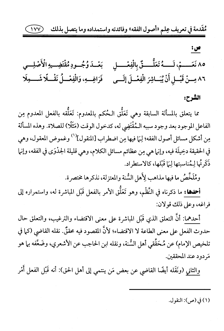 85 - نَعَمْ، لَهُ تَعَلُّقٌ بِالْفِعْلِ ... بَعْدَ وُجُودِ مُقْتَضِيهِ الْأَصْلِي