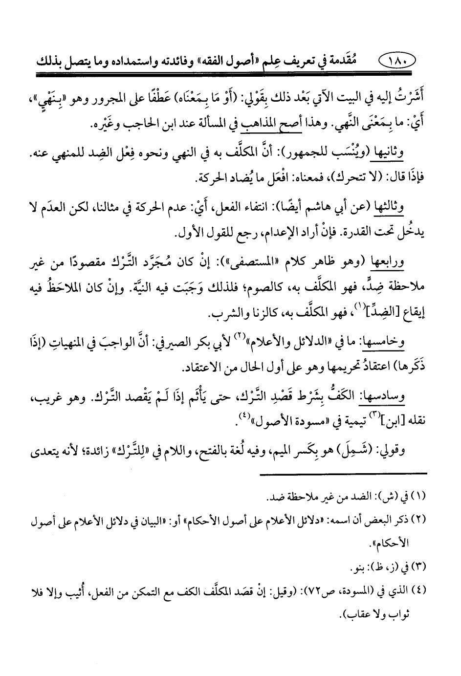 وثالثها (عن أبي هاشم أيضًا): انتفاء الفعل، أَيْ: عدم الحركة في مثالنا، لكن العدَم لا يدخُل تحت القدرة. فإنْ أراد الإعدام، رجع للقول الأول.