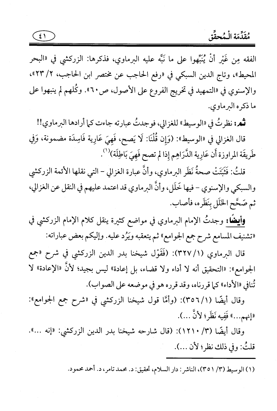 قلتُ: فَثَبَتَتْ صحةُ نَظَر البرماوي، وأنَّ عبارة الغزالي - التي نقلها الأئمة الزركشي والسبكي والإسنوي - فيها خَلَل، وأنَّ البرماوي قد اعتمد عليهم في النقل عن الغزالي، ثم صَحَّح الخَلَل بِنَظَره، فأصاب.