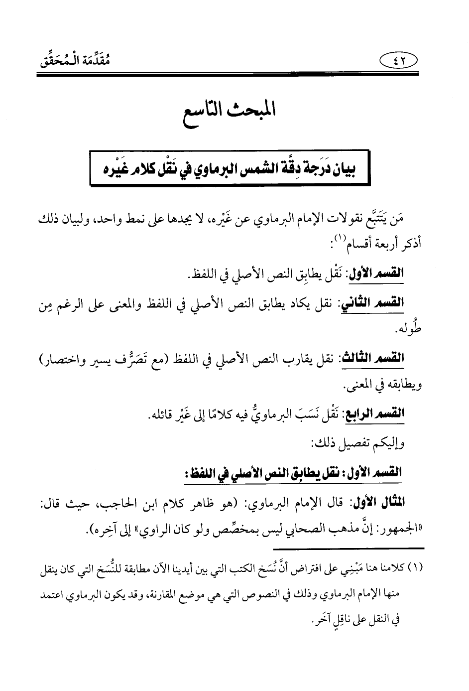 مَن يَتَتبَّع نقولات الإمام البرماوي عن غَيْره، لا يجدها على نمط واحد، ولبيان ذلك أذكر أربعة أقسام (¬1):