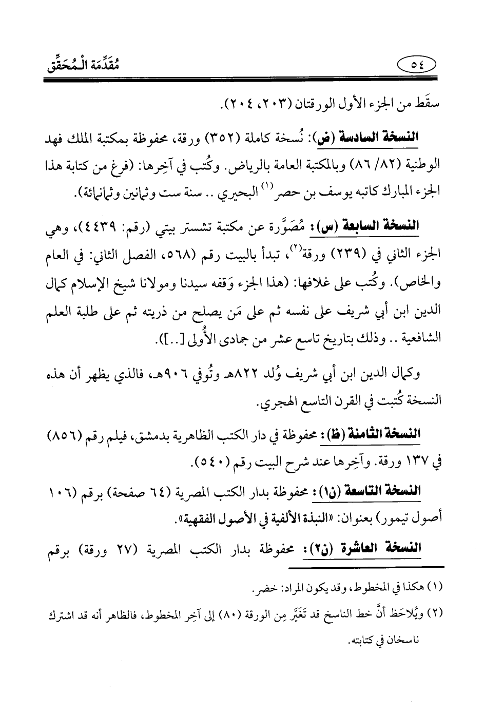 النسخة التاسعة (ن 1): محفوظة بدار الكتب المصرية (64 صفحة) برقم (106 أصول تيمور) بعنوان: "النبذة الألفية في الأصول الفقهية".