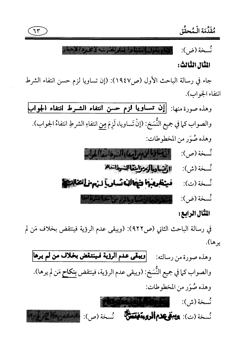 جاء في رسالة الباحث الأول (ص 1947): (إن تساويا لزم حسن انتفاء الشرط انتفاء الجواب).