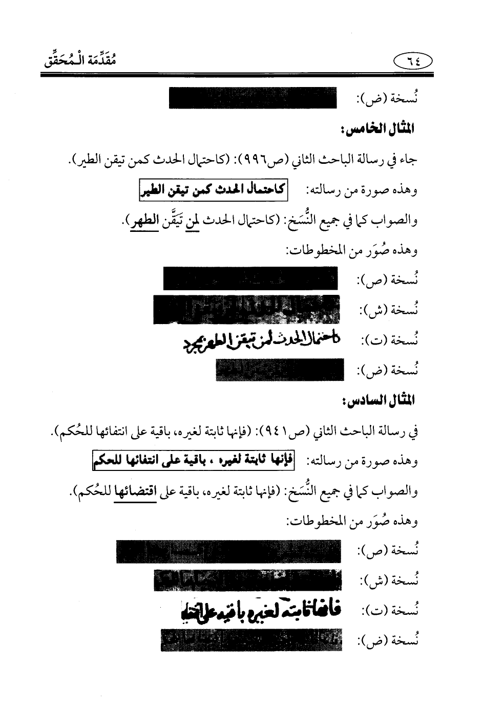 جاء في رسالة الباحث الثاني (ص 996): (كاحتمال الحدث كمن تيقن الطير).