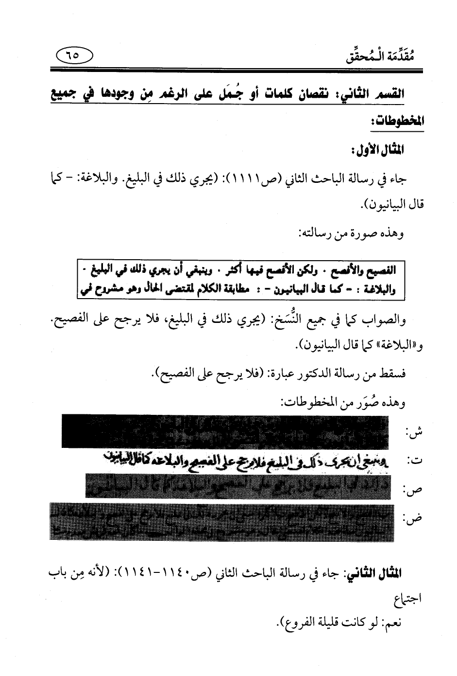 المثال الثاني: جاء في رسالة الباحث الثاني (ص 1140 - 1141): (لأنه مِن باب اجتماع