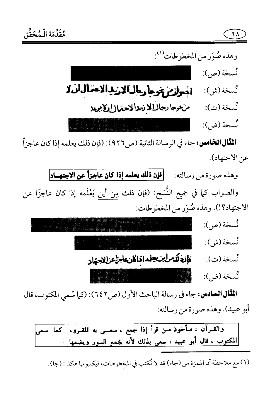 المثال الخامس: جاء في الرسالة الثانية (ص 926): (فإن ذلك يعلمه إذا كان عاجزًا عن الاجتهاد).