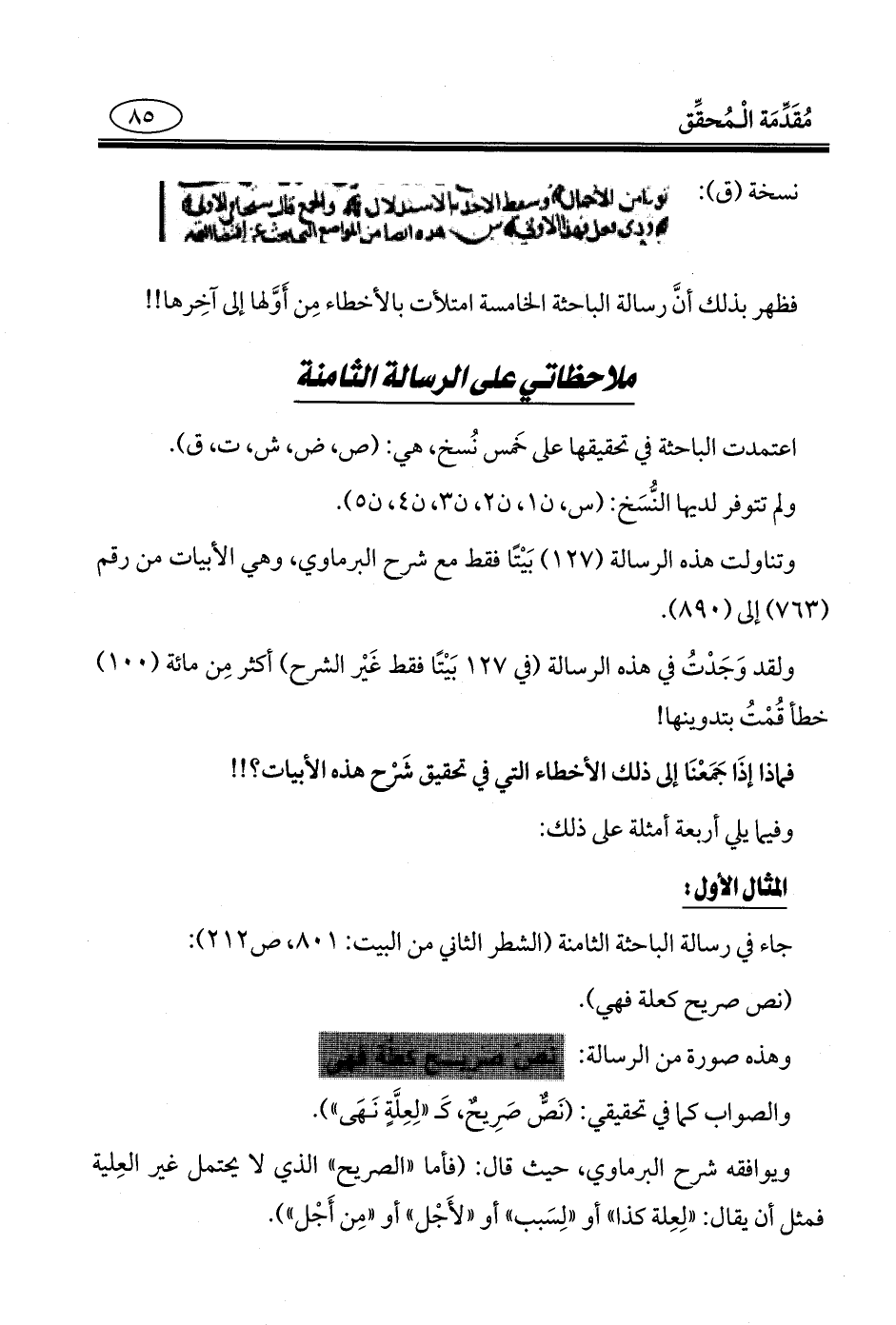 ولقد وَجَدْتُ في هذه الرسالة (في 127 بَيْتًا فقط غَيْر الشرح) أكثر مِن مائة (100) خطأ قُمْتُ بتدوينها!