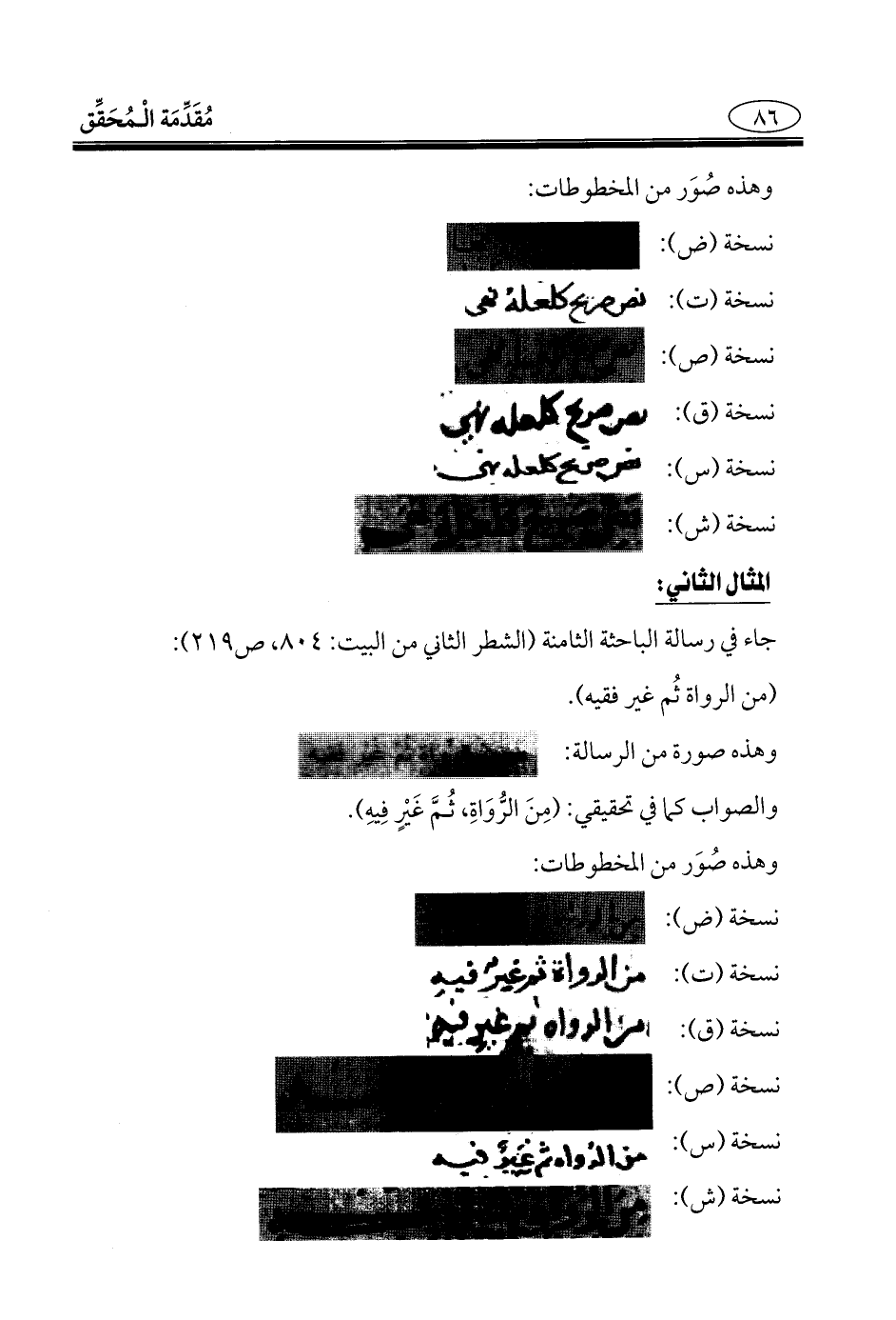 جاء في رسالة الباحثة الثامنة (الشطر الثاني من البيت: 804، ص 219):