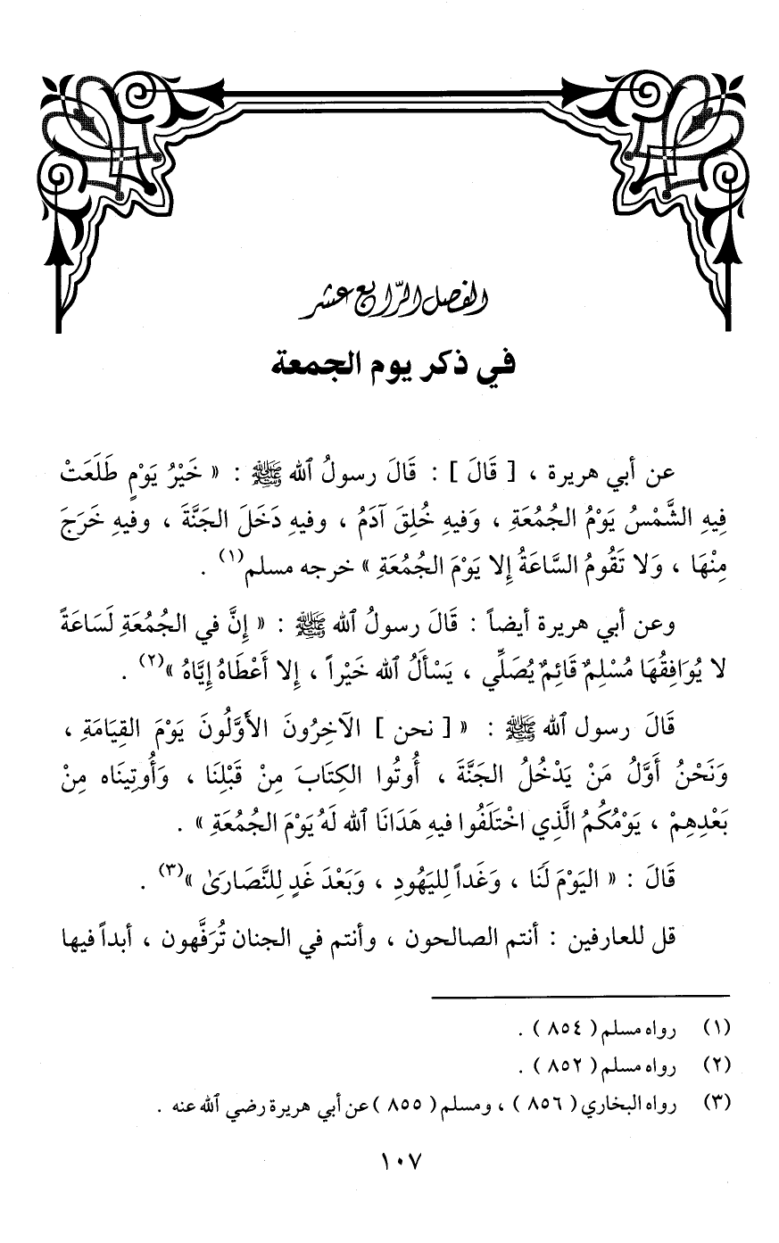 قَالَ رسول الله - صلى الله عليه وسلم -: " [نحن] الآخِرُونَ الأوَّلُونَ يَوْمَ القِيَامَةِ، وَنَحْنُ أَوَّلُ مَنْ يَدْخُلُ الجَنَّةَ، أُوتُوا الكِتَابَ مِنْ قَبْلِنَا، وَأُوتينَاه مِنْ بَعْدِهِمْ، يَوْمُكُمُ الَّذِي اخْتَلَفُوا فيهِ هَدَانَا الله لَهُ يَوْمَ الجُمُعَةِ".