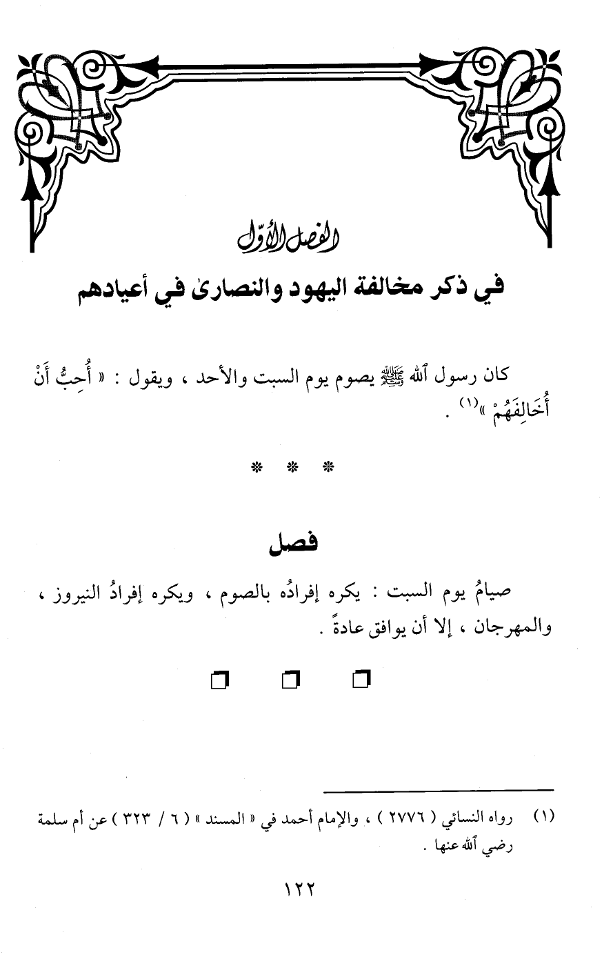في ذكر مخالفة اليهود والنصارى في أعيادهم