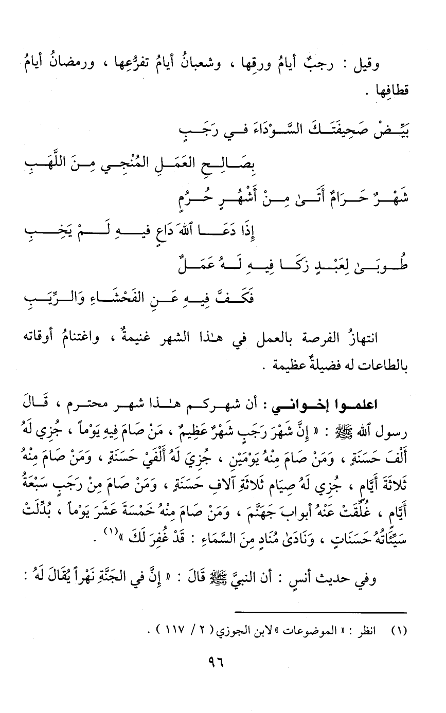 بَيِّضْ صَحِيفَتَكَ السَّوْدَاءَ في رَجَبٍ ... بِصَالِحِ العَمَلِ المُنْجِي مِنَ اللَّهَبِ