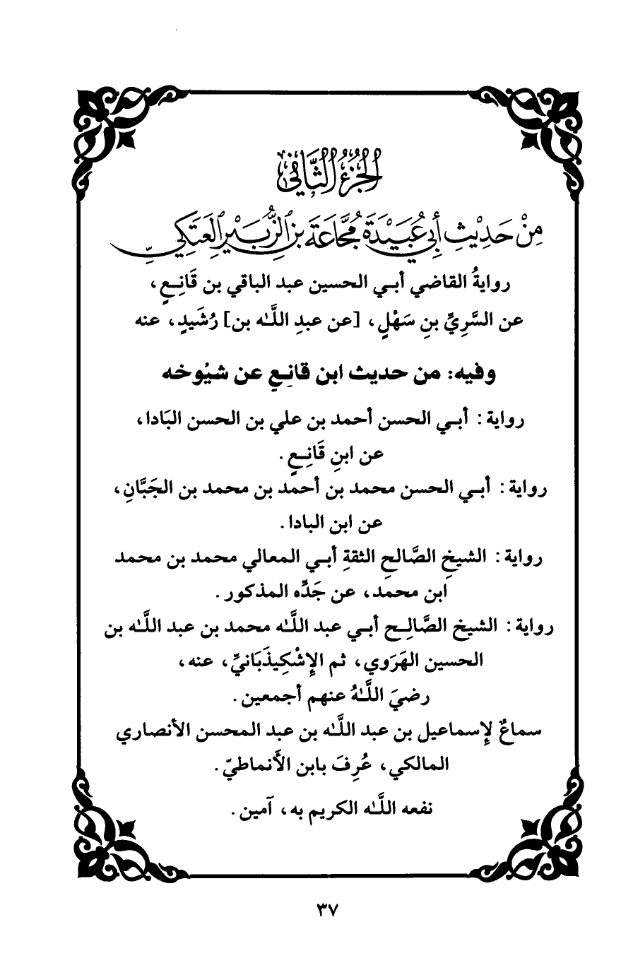 رواية القاضي أبي الحسين عبد الباقي بن قانع عن السري بن سهل [عن عبد الله بن] رشيد عنه
