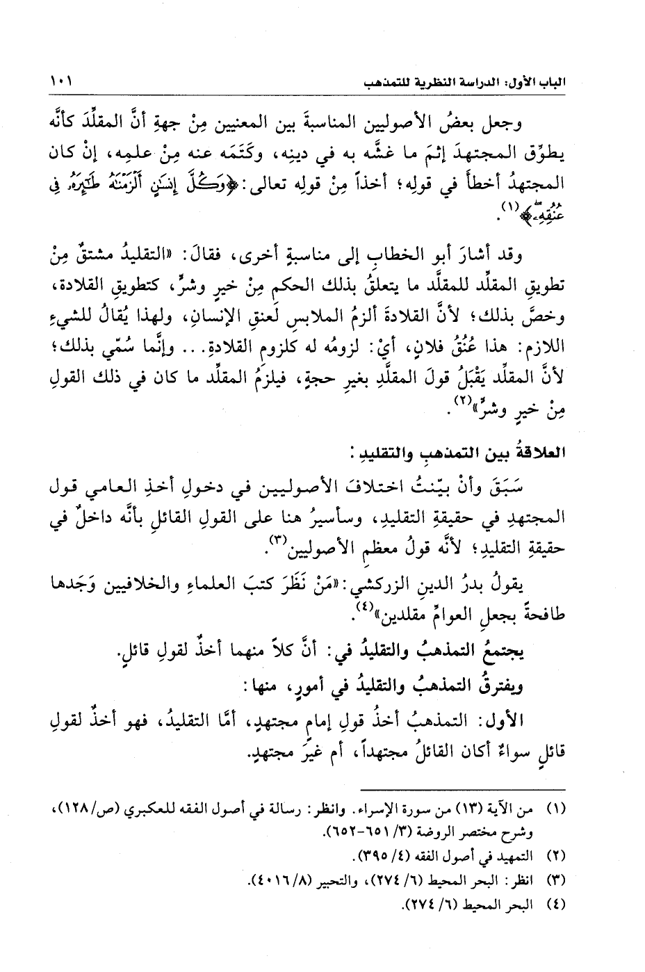 يقولُ بدرُ الدينِ الزركشي: "مَنْ نَظَرَ كتبَ العلماءِ والخلافيين وَجَدها طافحةً بجعلِ العوامِّ مقلدين" (¬٤).