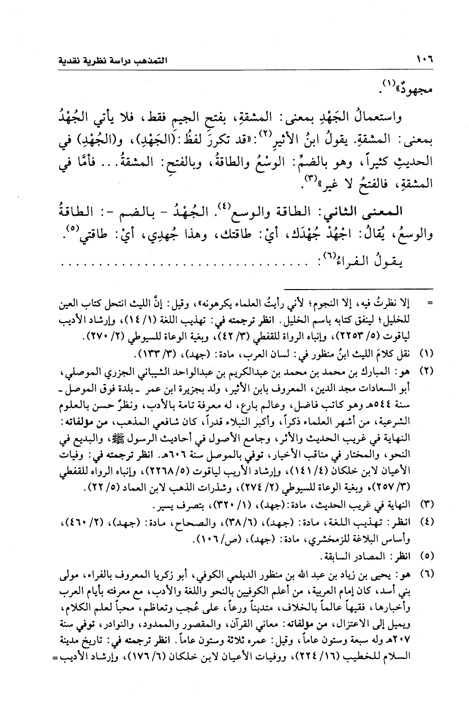 (¬٤) انظر: تهذيب اللغة، مادة: (جهد)، (٦/ ٣٨)، والصحاح، مادة: (جهد)، (٢/ ٤٦٠)، وأساس البلاغة للزمخشري، مادة: (جهد)، (ص/ ١٠٦).