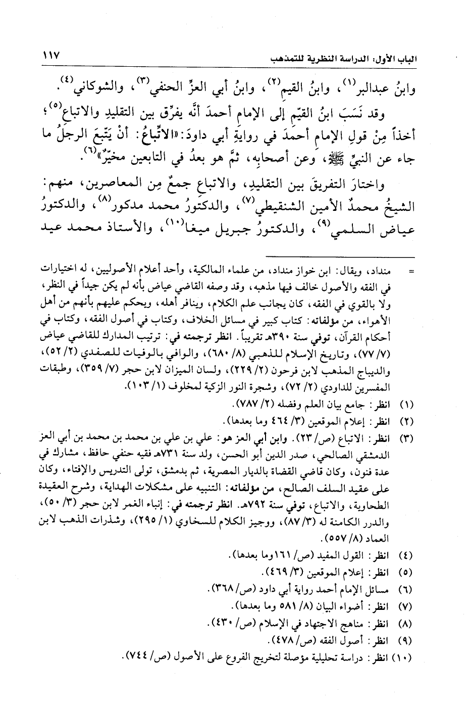 واختارَ التفريقَ بين التقليدِ، والاتباعِ جمعٌ مِن المعاصرين، منهم: الشيخُ محمدٌ الأمين الشنقيطي (¬٧)، والدكتورُ محمد مدكور (¬٨)، والدكتورُ عياض السلمي (¬٩)، والدكتورُ جبريل ميغا (¬١٠)، والأستاذ محمد عيد