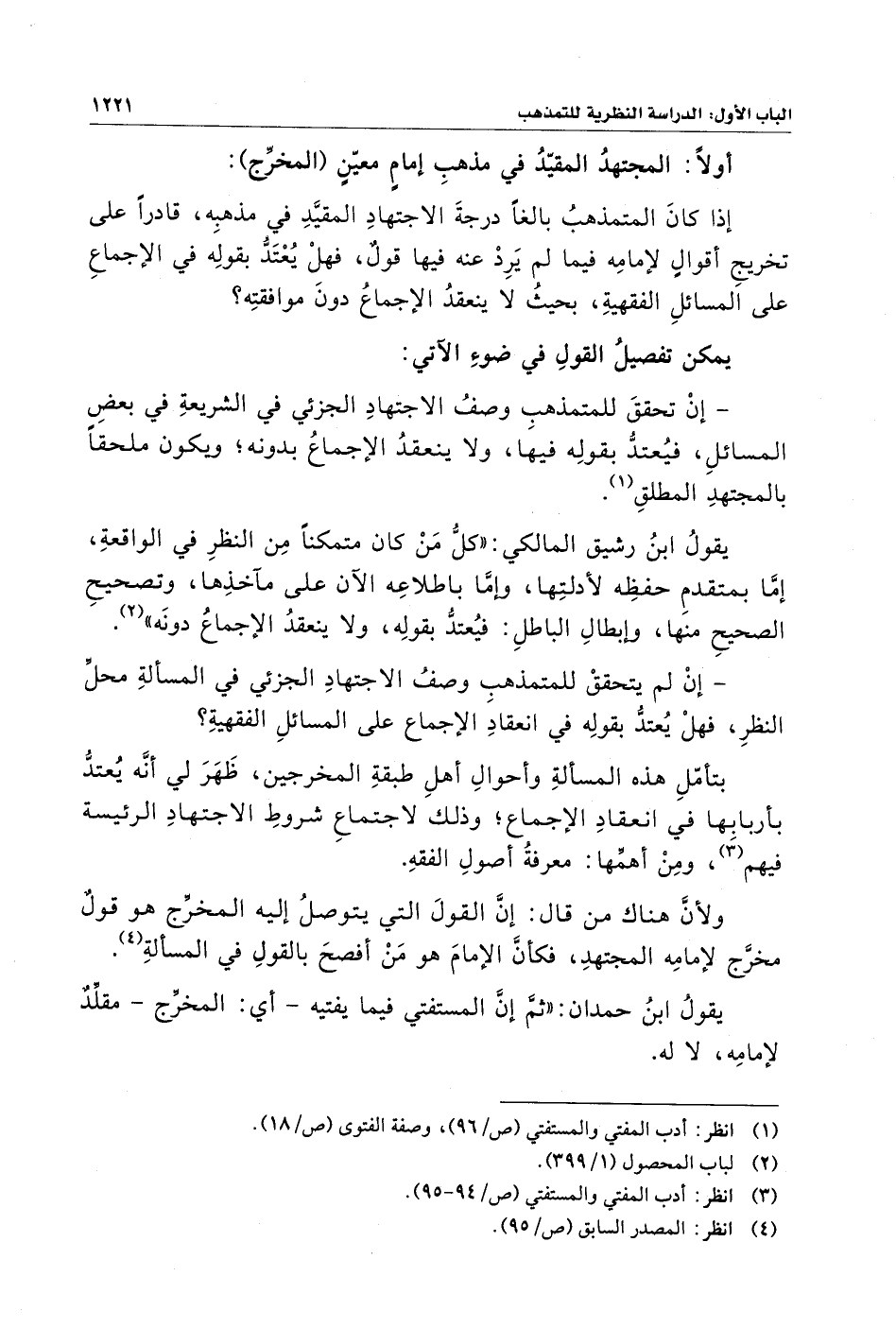 أولًا: المجتهدُ المقيّدُ في مذهبِ إمامٍ معيّنٍ (المخرِّج):