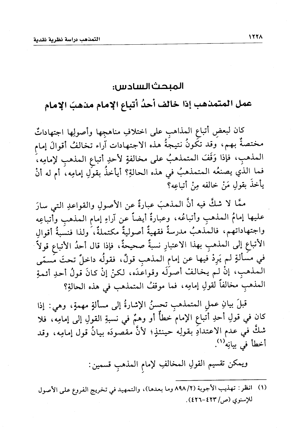 المبحث السادس: عمل المتمذهب إذا خالف أحدُ أتباع الإمام مذهبَ الإمام