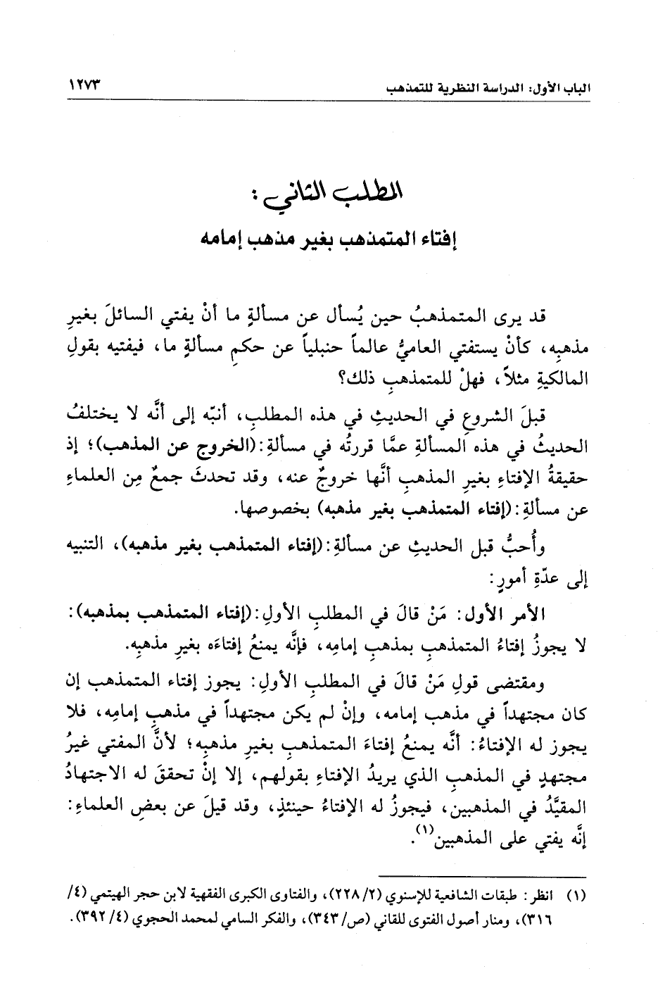 (¬١) انظر: طبقات الشافعية للإِسنوي (٢/ ٢٢٨)، والفتاوى الكبرى الفقهية لابن حجر الهيتمي (٤/ ٣١٦)، ومنار أصول الفتوى للقاني (ص/ ٣٤٣)، والفكر السامي لمحمد الحجوي (٤/ ٣٩٢).