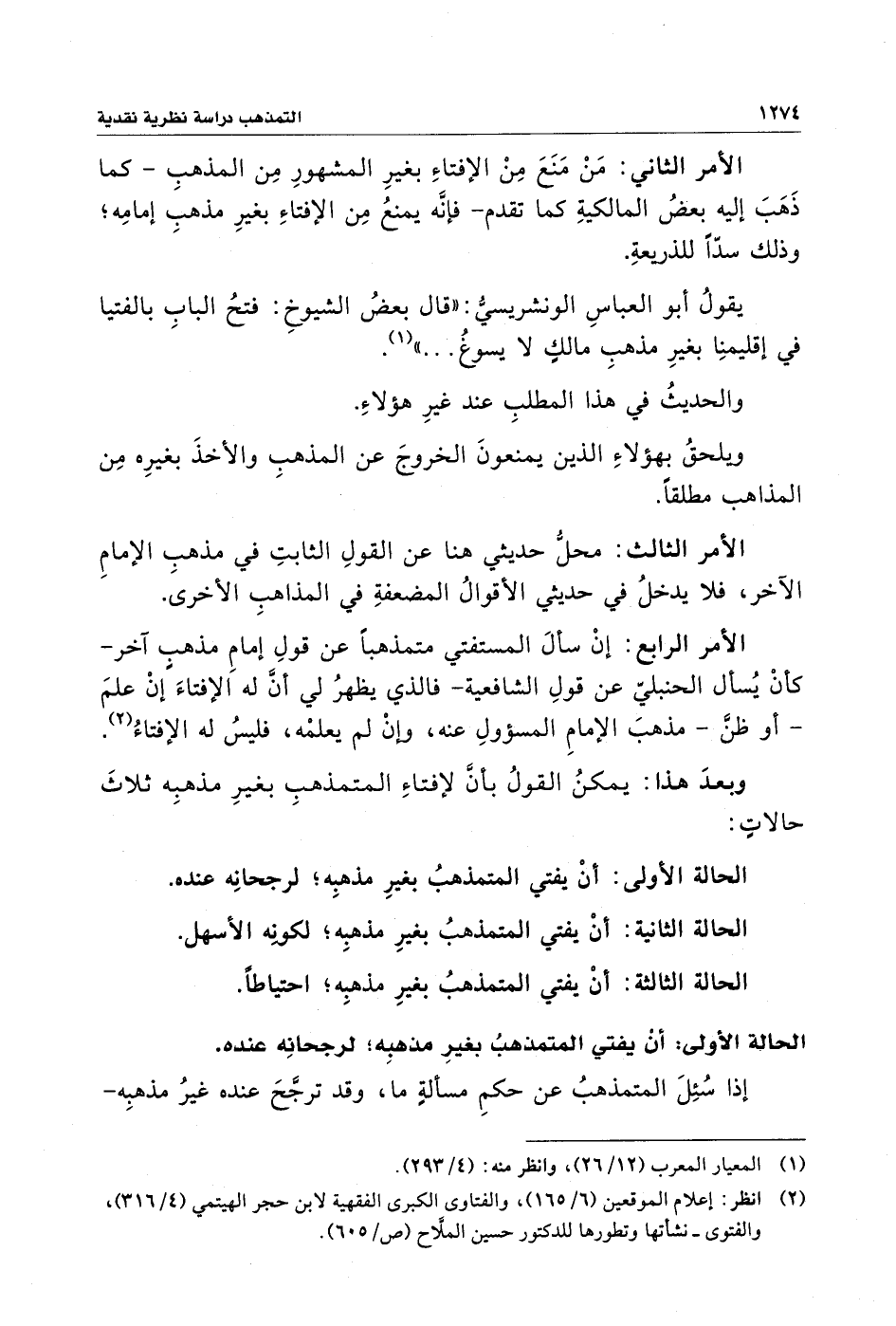 (¬٢) انظر: إِعلام الموقعين (٦/ ١٦٥)، والفتاوى الكبرى الفقهية لابن حجر الهيتمي (٤/ ٣١٦)، والفتوى - نشأتها وتطورها للدكتور حسين الملَّاح (ص/ ٦٠٥).