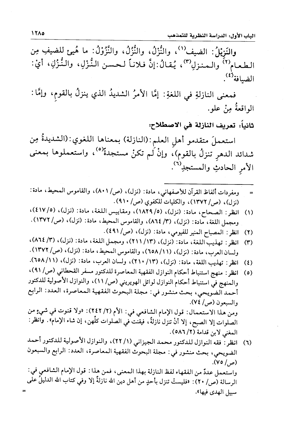 (¬٣) انظر: تهذيب اللغة، مادة: (نزل)، (١٣/ ٢١١)، ومجمل اللغة، مادة: (نزل)، (٣/ ٨٦٤)، ولسان العرب، مادة: (نزل)، (١١/ ٦٥٨)، والقاموس المحيط، مادة: (نزل)، (ص/ ١٣٧٢).