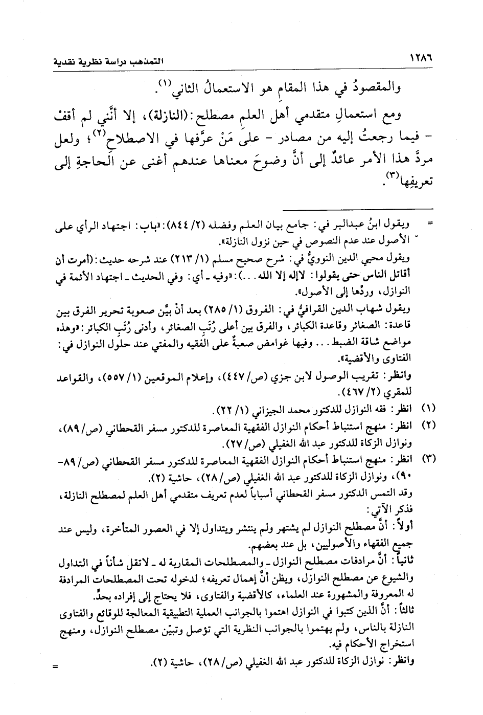 (¬٣) انظر: منهج استنباط أحكام النوازل الفقهية المعاصرة للدكتور مسفر القحطاني (ص/ ٨٩ - ٩٠)، ونوازل الزكاة للدكتور عبد الله الغفيلي (ص/ ٢٨)، حاشية (٢).