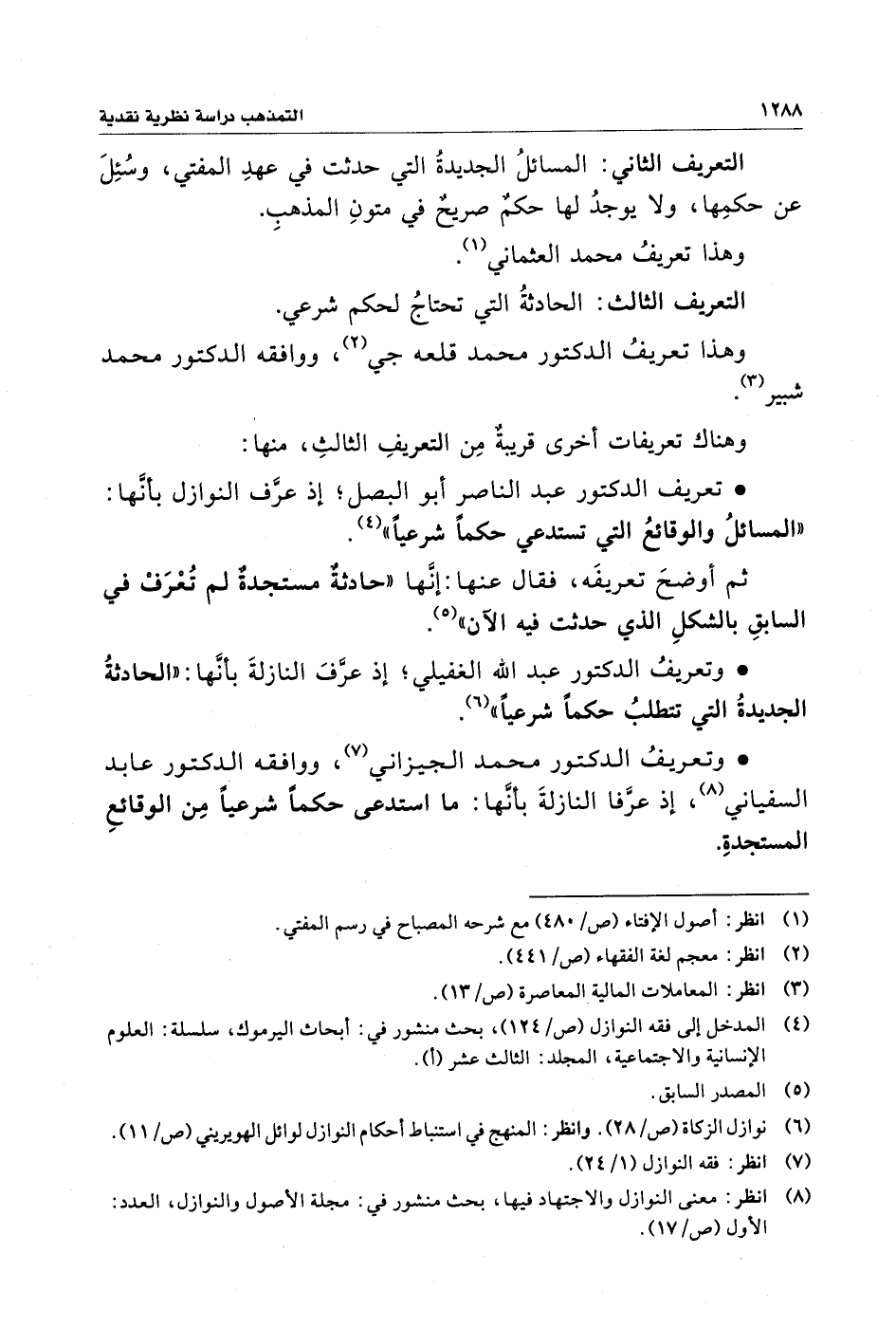 (¬٨) انظر: معنى النوازل والاجتهاد فيها، بحث منشور في: مجلة الأصول والنوازل، العدد: الأول (ص/ ١٧).